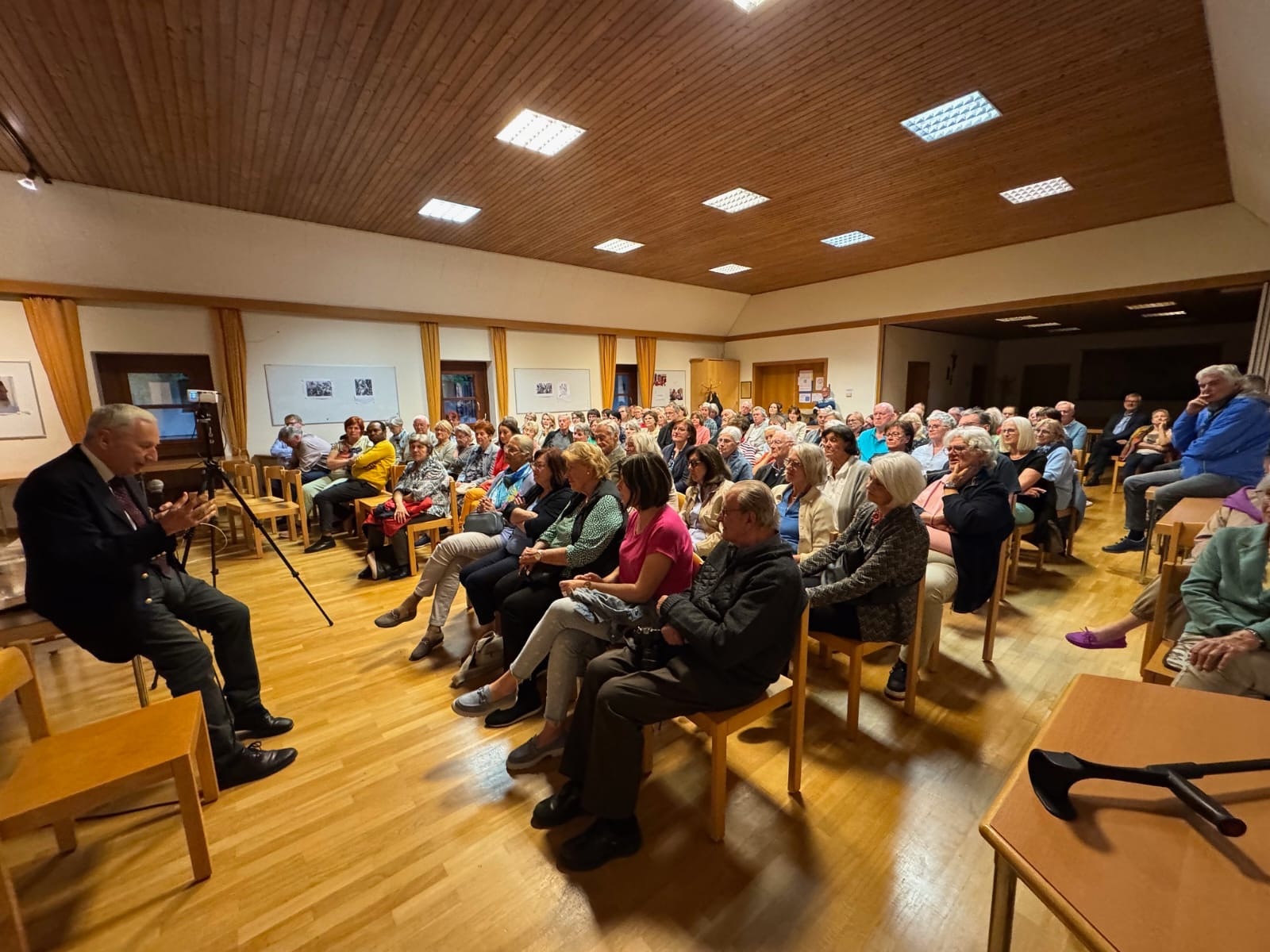 Im vollbesetzten Pfarrsaal von St. Severin und unter Anwesensheit von Tullns Bürgermeister Mag. Peter Eisenschenk lud die Pfarre und Pater Pius zu Diskussion. Die Einladung erfolgte vom kbw St. Severin.